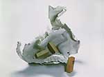 These sculptures are made of porcelain, steel or a combination of both materials. There stength is contrasted against fragility, challenging preconceptions about the mediums. | ||